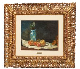 According to Daniel Wildenstein, at first glance this still-life painted early in Gauguin’s career would be datable between 1874 and 1878. Actually, there is one component that makes it possible to pinpoint the date to the final months of 1876. In October of that year, the radical depute Louis Andrieux founded the political newspaper Le Petit Parisien that we see under the vase of hyacinths. That Gauguin had the newspaper in his home and decided to include it in the painting speaks to his resolve to divulge his political leanings. Gauguin’s life at the time was filled with changes. Already known as a collector in the Parisian artistic circles – a milieu he had been introduced to by his guardian, Gustave Arosa, an enthusiastic collector of contemporary art - Gauguin made his debut as a painter at the 1876 Salon, with Sous-bois a Viroflay (Copenhagen, Ny Carlsberg Glyptotek). In those days, his paintings – and he is believed to have started no earlier than 1873, the year of his first dated works, consisted mainly of landscapes permeated with dark green and brown as if the ground, illuminated by a weak sun, had been soaked with water. It was Arosa’s daughter – herself a painter – who gave Gauguin his first lessons which he furthered by studying early masterpieces that he copied in the Louvre along with his friend, Claude-Émile Schuffenecker whom he had met while working with the stockbroker Paul Bertin. Around the time Gauguin painted this still-life, even though he had a wife – the Danish woman he married in 1873 – and children to support, he left his job as a stockbroker, that he had obtained in 1872 thanks to Arosa and began painting more steadily. With Émile he also attended the Académie Colarossi founded by the sculptor Filippo Colarossi. When Gauguin died, Émile’s niece, Jeanne, who was Amédée Schuffenecker’s daughter, took care of organizing his paintings. At that time, her father gave her a black-and-white photograph of our painting which was then kept in the Paris collection of the art photographers, Druet-Vizzavona. The picture was also reproduced in black-and-white in Wildenstein’s Catalogue de l’oeuvre peint published in 2001. The colours contribute to highlighting the modelling of the items arranged on a flat surface in an interior with a dark background. Set on a white newspaper – a precious source of light for the entire composition, the apples surround the vase of hyacinths, winter flowers that also decorate the container. In most of the paintings we currently know, the still-lifes he painted in the 1870s practically follow a basic pattern: indoors, neutral backgrounds, flat surface – generally a table, with a cloth, a newspaper or musical score under fruits, flowers or a vase. The fruits and flowers offer a clue to the season when the paintings, that are not always dated, were executed. The first example of a still-life in Gauguin’s oeuvre is Cerises et carafon datable to 1875-77. He painted Bouquet de pivoines sur une partition, in 1876 which was the first time he depicted paper under a vase, a device he reprised in Fleurs dans un vase blu et partition. After Jacinthes et pommes sur un journal, he began enriching his still-lifes with background elements to the point that they developed into real genre scenes such as L’interieur, rue Carcel (1881) in which he portrayed himself from the back, leaning against the piano his wife is playing. The vase of flowers set on a light-coloured tablecloth in the foreground illuminates the entire, and essentially dark, primary subject of the scene.