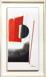 As a very young man, Paul Mansouroff occupied an important place among the Russian avant-garde abstract artists of the early Soviet period. He left Russia in the late Twenties, settled in Paris, and did not exhibit for more than 25 years, until 1957 when – by this time sixty – he decided to return to painting. His work was frenetic, his production oriented toward a “disinterested” art reaching toward mystical or transcendental absolutism. His panels, exasperatedly vertical and irregularly surfaced, are conceived as organic fragments in which an emotional “tension” is established via rapid variations of colour transparency and just as rapid shifts between light and shadow. In line with the theories of his fellow Russian, philosopher Nikolai Fyodorovich Fyodorov, concerning the vertical position as a sign of life as opposed to the horizontal position as a sign of death, Mansouroff explained how the immutable verticality of his creations permitted him, and the spectator, to rise on high. The rhythm of his panels is beaten out by geometric forms, always maintained in a controlled, regular order that go to form an extensive decorative repertoire on which he drew to give form to his imaginings.