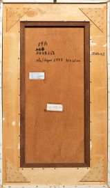 on the reverse: inscribed “Mansouroff 1973”, inscribed “19A / SEHB142 / olio-legno 1973 80x40 cm”, label of the Galleria Acerbi, Forte dei Marmi, label of the exhibition Opere di Paul Mansouroff