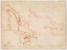 A VIEW OF PONTE SAN SISTO (recto) AND A VIEW OF A RIVER WITH STUDIES OF FIGURES (verso)