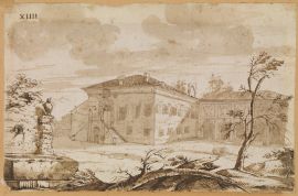Entrambi i fogli recano in alto a sinistra un numero romano, a inchiostro, che porta a ipotizzare di essere in presenza di due tavole facenti parti di una serie di vedute della campagna bolognese.
