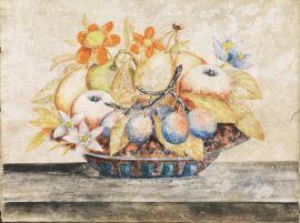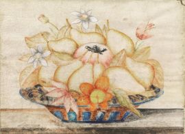 NATURE MORTE CON FRUTTI E FIORI IN UN PIATTO