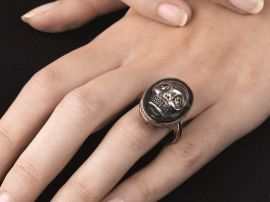 A.CODOGNATO ANELLO MEMENTO MORI IN ORO GIALLO E ARGENTO