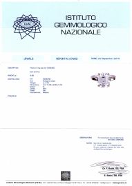 un diamante taglio ottagonale di ct 4.76, colore G, purezza Vs2, affiancato da un diamante taglio tapes di ct 0.10 circa, mis. 11, g 4. Corredato di certificato gemmologico I.G.N. del 24/09/2019 attestante le caratteristiche.