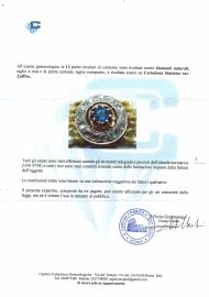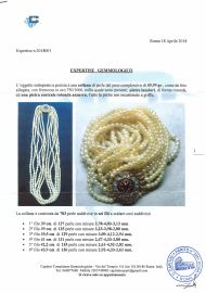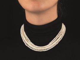 a sei fili leggermente digradanti da mm 4 a mm 2, con fermatura in oro a basso titolo impreziosita da uno zaffiro rotondo e rose di diamante, lungh. cm 42