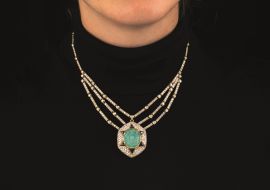 COLLANA IN ORO GIALLO CON SMERALDO ZAFFIRI E DIAMANTI