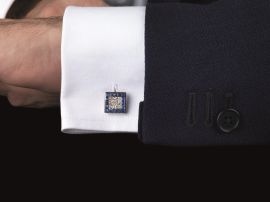 PAIO DI GEMELLI IN ORO BIANCO 18KT CON ZAFFIRI E DIAMANTI