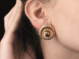 PAIO DI ORECCHINI IN ORO GIALLO CON ZAFFIRI E RUBINI