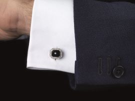 SET DI GEMELLI IN ORO BIANCO 18KT CON ONICE E DIAMANTI