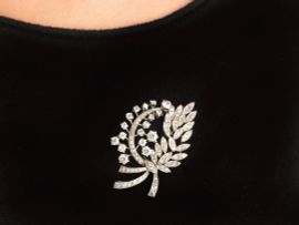 a tralcio fiorito, impreziosito da diamanti taglio vecchio e brillante per ct 8 circa, dim. cm 6x4, g 19