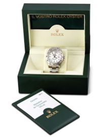 cassa in acciaio, quadrante bianco “Polar” con indici a bicchierini neri e Super Luminova, ghiera in acciaio, vetro minerale, movimento a carica automatica cal. 3185, bracciale in acciaio ref. 78790A codice CL9 del 2004, finali SEL. L’orologio è corredato di scatola, garanzia e libretti, presenti ancora le pellicole antigraffio originali. Diam. mm 40