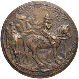 Ae mm. 130 D/ Busto a d. con grande cappello R/ L'Imperatore e un suo paggio a cavallo di fronte a un tabernacolo con croce Hill 19; Pollard I, 2