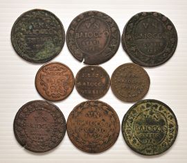 GUBBIO STATO PONTIFICIO (XVII sec.) SEI BAIOCCHI E TRE MEZZI BAIOCCHI