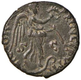 Ae gr. 9,40 D/ Busto elmato di Roma a d. R/ La Vittoria andante a d. con corona e palma