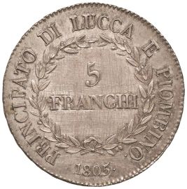 PRINCIPATO DI LUCCA E PIOMBINO. ELISA BONAPARTE E FELICE BACIOCCHI (1805-1815) SCUDO 1805 var.