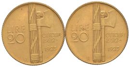 REPRODUCTION OF 20 LIRE FASCETTO. TWO COINS. Au gr. 12,50