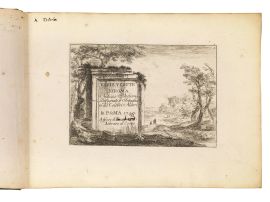 Piccolo in folio oblungo (225 x 311 mm). [94] tavole calcografiche incluso il frontespizio, di cui 48 sottoscritte da Piranesi, le altre da Jérôme Charles Bellicard (7 tavole, datate 1750), J.L. Le Geay, Philothée François Duflos, e Paolo Anesi. Legatura coeva in pergamena tinta di verde, tassello in marocchino rosso al dorso, sguardie marmorizzate. Piccola mancanza ad un angolo della legatura e altre minori tracce del tempo, nome di Amidei corretto a mano in “Bouchard” e piccolo timbro “A Dubois” al frontespizio, occasionali pallide gore e fioriture marginali (più forti su solo un paio di tavole), piccola macchia d’inchiostro al margine esterno delle ultime carte, ma nel complesso bella copia genuina.