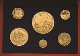 SERIE DI 6 MEDAGLIE IN ORO PER IL PRIMO ATTERRAGGIO LUNARE DELL’UOMO NEL 1969 IN ASTUCCIO