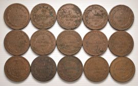 STATO PONTIFICIO. PIO IX (1846-1870) QUINDICI MONETE DA 5 BAIOCCHI 1848-54