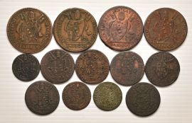 Baiocco 1801 (6), 1802 (6), 1816 (2); ½ Baiocco (14); Quattrino (6)