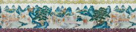 Le grandi dimensioni hanno fornito al decoratore un’ampia "tela" su cui lavorare, che ha sfruttato appieno, dipingendo una scena complessa ed interessante. Sullo sfondo, la meravigliosa montagna Kunlun si staglia a ovest, oltre il mitologico deserto di Liúshā (流沙). Questo luogo si narra fosse ubicato tra la regione di Tian Shan ("montagna del cielo") dell'Asia centrale e la sorgente del fiume Giallo. Kunlun è, nell’immaginario popolare cinese, un luogo mistico al di fuori del tempo, senza dolore o morte, dove fiorivano tutti i piaceri e le arti: musica gioiosa, danza, poesia e feste divine.