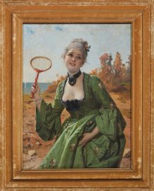 I due dipinti di eguali dimensioni che qui presentiamo, provenienti dalla collezione milanese Carraro-Rizzoli ed oggi in collezione privata, raffigurano due maliziose fanciulle intente a giocare al volano.
