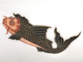 清康熙 黑彩描金鲤鱼纹盌一对 《若深珍藏》款