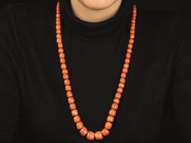 ad un filo di barilotti sfaccettati digradanti da mm 15x12 circa a mm 6x7 circa, fermatura in oro bianco, punzoni 750 e del fabbricante, lungh. cm 66, gr 93