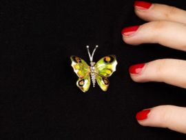 SPILLA IN ORO GIALLO E BIANCO CON SMALTI
