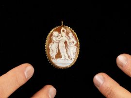 SPILLA/PENDENTE IN ORO GIALLO CON CAMMEO