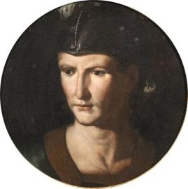 coppia di dipinti, olio su tavola, diam. 37 cm. ca.