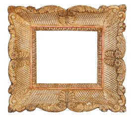 la prima in legno intagliato e dorato con battuta liscia e controbattuta a foglie e sottofoglie rivolte verso l’interno su profilo sagomato che si porta a muro; ingombro cm 54x46,5, luce cm 42,5x35,2, la seconda in legno e pastiglia intagliati e dorati con battuta a doppio nastro incrociato che con gole diritte si porta su ampia gola ornata a motivi Impero vegetali ricorrenti; ingombro cm 62,4x51, luce cm 52,4x41; la terza in legno laccato con battuta a fogliette lanceolate su sagoma a vassoio incisa a piccole losanghe e profilata da volute fogliacee dalle quali ai centri e agli angoli si dipartono foglie e fiori; ingombro cm 36x38,5, luce cm 18x20,4