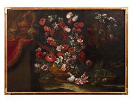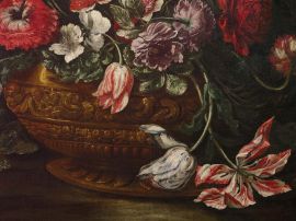 Al pari del nostro dipinto, le tele citate raffigurano una variazione sul tema, assai familiare all’estetica barocca, del paragone tra natura e artificio accostando un bouquet di fiori variopinti raccolti in un vaso sbalzato a una pianta selvatica, fiorita spontaneamente sul terreno sassoso.