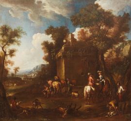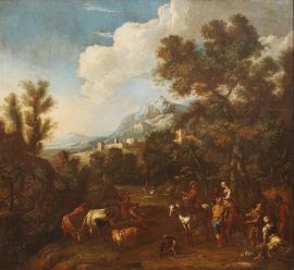 LANDSCAPE WITH PEASANTS AND TRAVELLERS