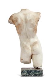 in marmo, priva di gambe e braccia, cm 49x27x14, su base in marmo verde, alt. cm 5