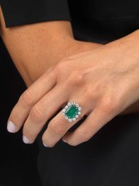 in oro bianco 18kt, smeraldo taglio ottagonale di ct 2.80 circa, diamanti taglio brillante per ct 1.20 circa, mis. 16, gr 6