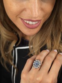 ANELLO A FIORE CON ZAFFIRO E DIAMANTI