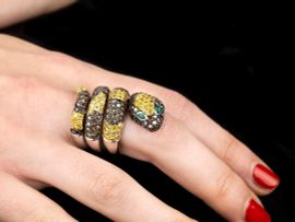 ANELLO A SERPENTE CON DIAMANTI BROWN E SMERALDI