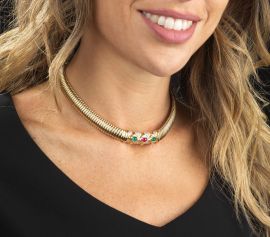 BULGARI TUBOGAS RUBY EMERALD AND DIAMOND NECKLACE IN YELLOW GOLD