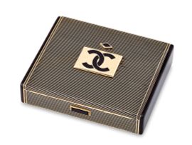 in oro giallo 18kt e smalto nero con portacipria e porta rossetto, punzoni francesi, dim 60x50 mm, gr 100