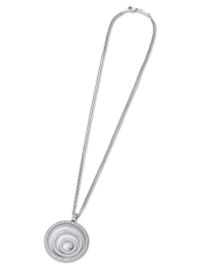 in oro bianco 18kt, pendente di diam. 30 mm, diamanti taglio brillante per ct 2 circa, firmato "Chopard Happy Sport", punzone 750, lungh. cm 41, gr 26