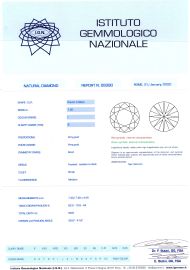 taglio brillante, colore I, purezza IF. Corredato di certificato IGN del 31/01/2020 attestante le caratteristiche.