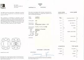 taglio cuscino, colore D, purezza Vs2. Corredato di certificato HRD del 26/06/1996 attestante le caratteristiche.