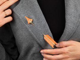 TRABUCCO ARROW SHAPED CORAL AND DIAMOND PIN IN YELLOW GOLD
