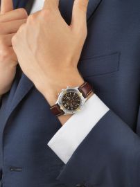 cassa in acciaio, ghiera girevole, quadrante nero con indici al trizio, vetro minerale, movimento a carica manuale, cinturino in pelle con fibbia. Corredato di scatola, garanzia e libretto. Diam mm 36.