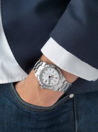 cassa oyster in acciaio, quadrante bianco con indici a bicchierino nero, vetro minerale, movimento a carica automatica cal 3185, bracciale oyster ref 78790A finali SEL. Diam mm 40