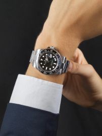 cassa oyster in acciaio con ghiera in ceramica”, quadrante nero con indici applicati, scritta gmt in verde, vetro minerale, movimento a carica automatica cal. 3186, bracciale Oyster con finali SEL. Diam mm 40