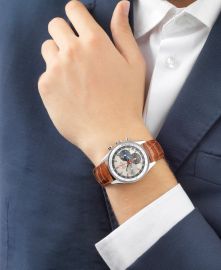 cassa in acciaio, fondello a vite con incisione logo Zenith, tasti a pompa, quadrante argentè con contatori cronografici di tre colori, vetro plastica, movimento a carica automatica 3019 PHC, cinturino in pelle originale con fibbia originale Zenith. Diam. mm 38