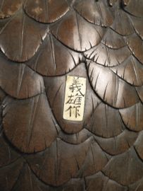 日本十九世纪 雄鸡铜像 《义雄作》款