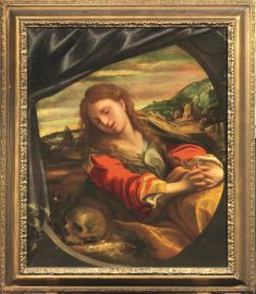 Il dipinto si ispira alla Maddalena eseguita da Correggio per il Compianto su Cristo morto eseguito nel 1524 ca e conservato presso la Galleria Nazionale di Parma.